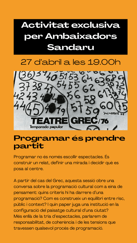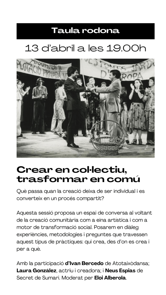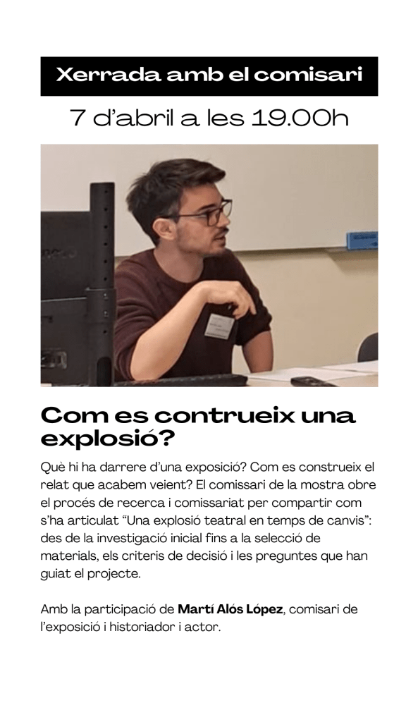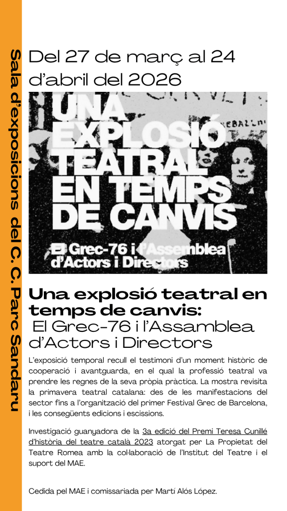 El cicle neix al voltant de l’exposició Una explosió teatral en temps de canvis. El Grec-76 i l’Assemblea d’Actors i Directors, una mostra que recupera el testimoni d’una època en què el sector teatral va decidir organitzar-se, prendre la paraula i repensar les seves pròpies estructures. Des de les mobilitzacions del 1976 fins al naixement del Festival Grec de Barcelona, l’exposició revisita una primavera teatral marcada per la cooperació, el conflicte i la transformació.